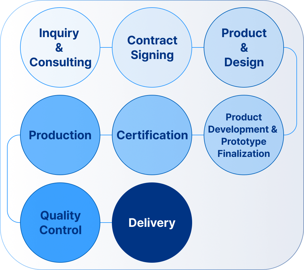 From market research to product planning, design, development, international medical certification, and production, Mediana provides optimized turn-key solutions in close collaboration with our clients.